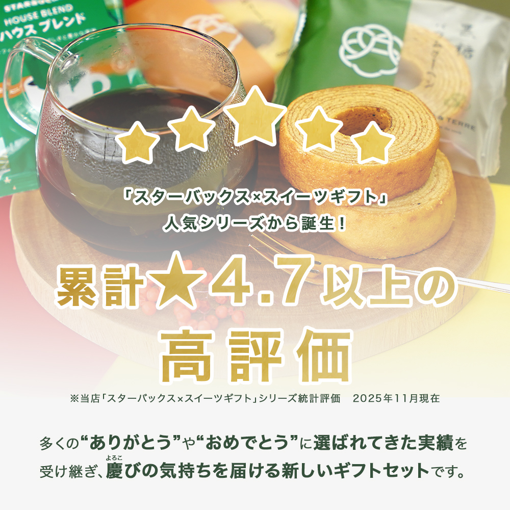 スタバ ギフト お菓子 スイーツ 内祝い お祝い お礼 出産 結婚 スターバックスコーヒー 1箱 & 極バームクーヘン 4個 御祝用 セット 爆買