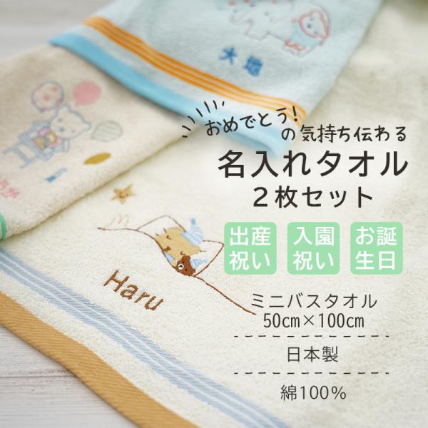 出産祝い 名入れ 男の子 女の子 名前入り ミニバスタオル2枚セット 泉州タオル Shinzi Katohデザイン 1歳誕生日 2歳誕生日 入園祝い 爆買