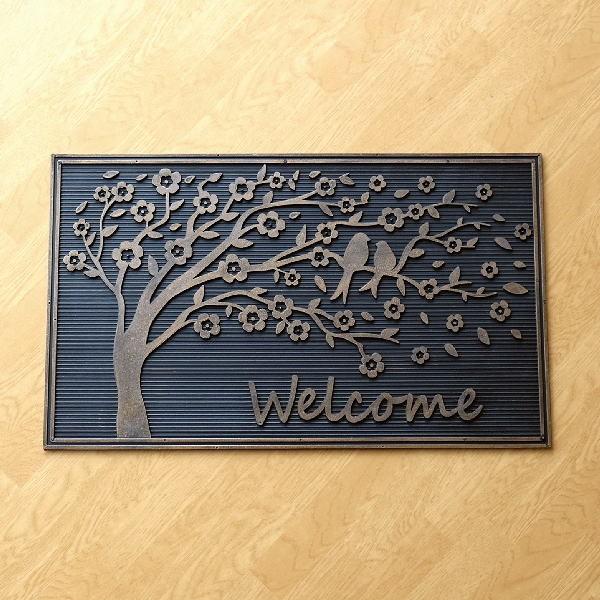 玄関マット 屋外 おしゃれ ゴム ラバーマット WELCOME モダン エントランスマット ラバーツリーバード