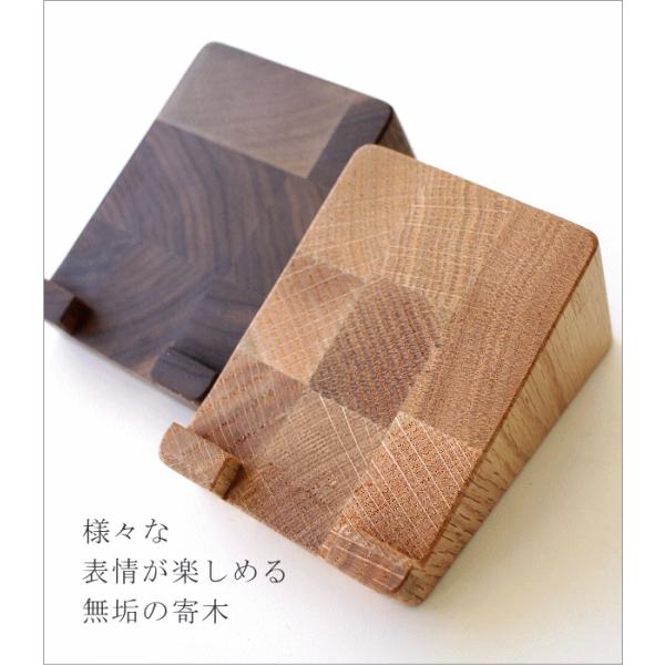 シンプルな形のモバイルスタンドは 寄木をカットしてつくる