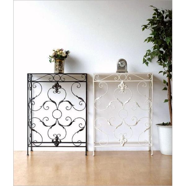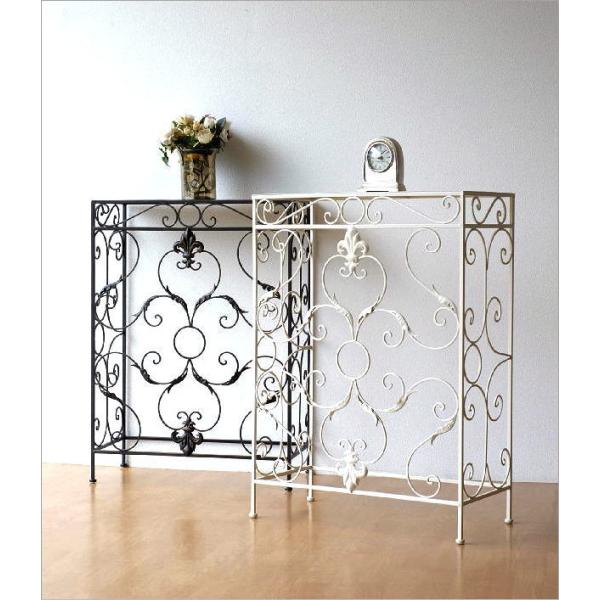 コンソールテーブル 玄関 スリム 奥行30cm アンティーク 家具 ブラック 黒 ホワイト 白 アイアン ヨーロピアン 花台 エレガントなアイアンのコンソール 2カラー