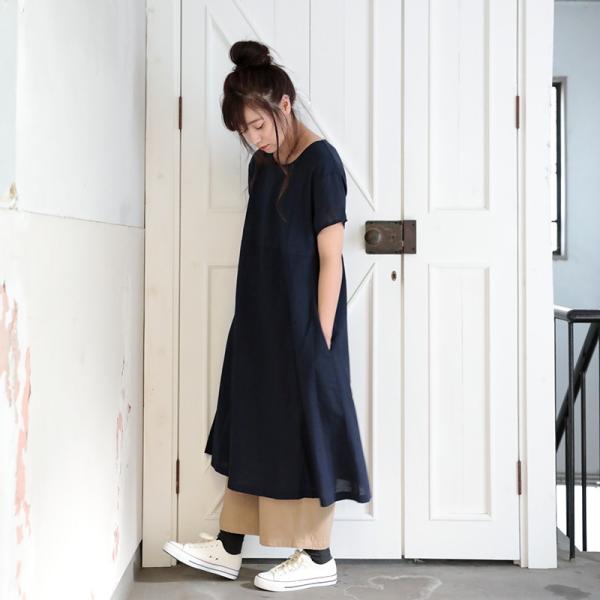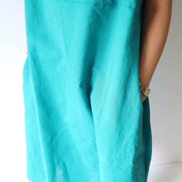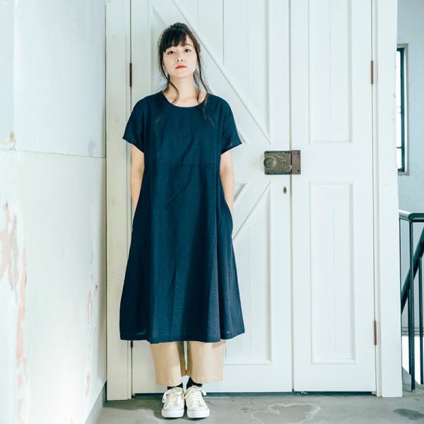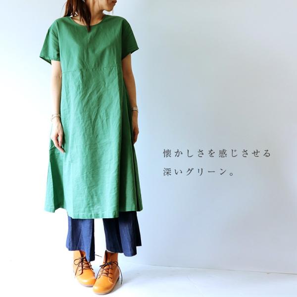 Carhaix キャレ コットンリネン 切替 Aライン くるみボタン 半袖 ワンピース