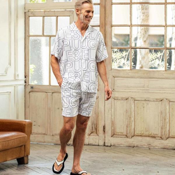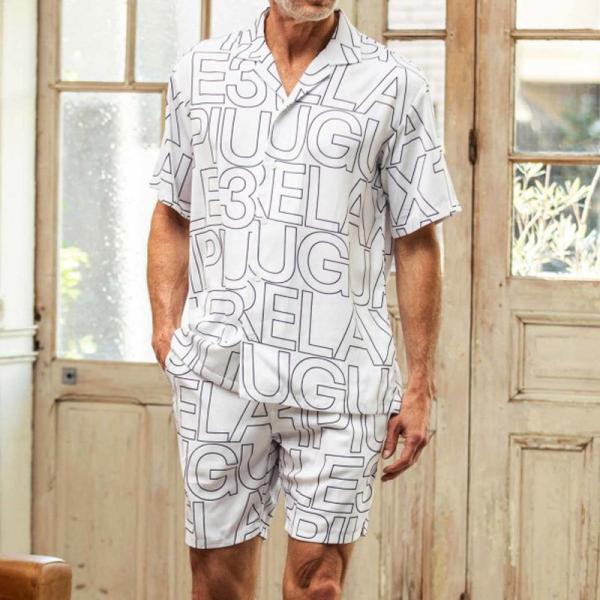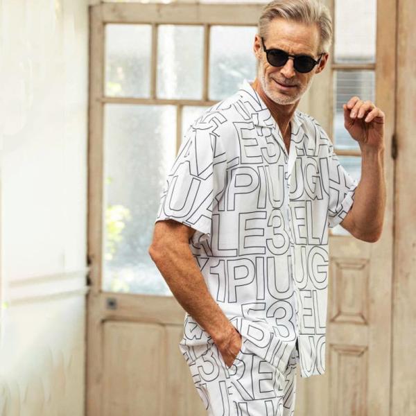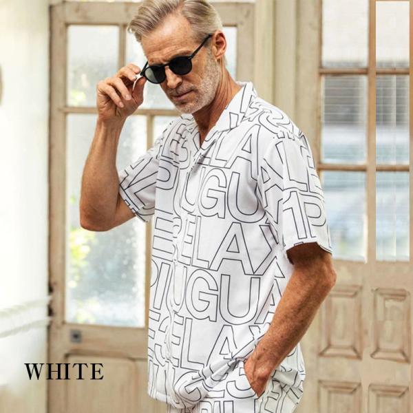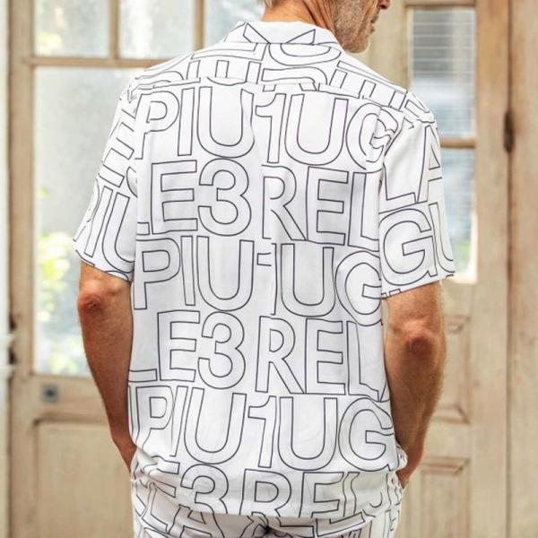 1PIU1UGUALE3 RELAX ウノピゥウノウグァーレトレ リラックス 総柄 ロゴ オープンカラー シャツ ( ブラック ホワイト ) アロハシャツ メンズ
