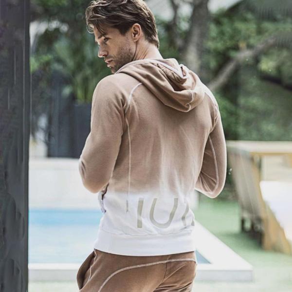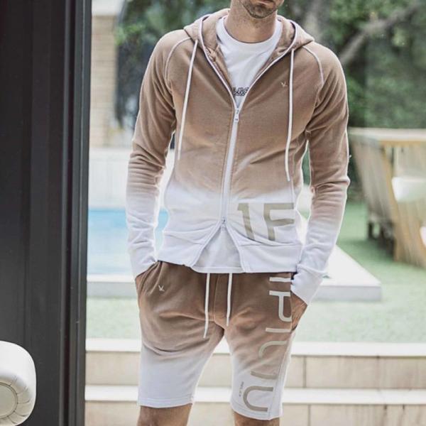 1PIU1UGUALE3 RELAX ウノピゥウノウグァーレトレ リラックス グラデーション ロゴ パーカー (ベージュ / ブラック ) ジップアップパーカー メンズ