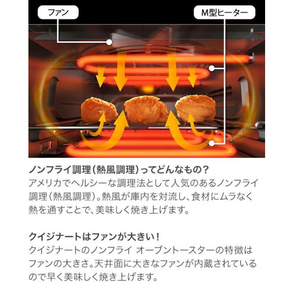 アメリカでヘルシーな調理法として人気のあるノンフライ調理(熱風調理)。熱風が庫内を対流し、食材にムラなく熱を通すことで、美味しく焼き上げます。