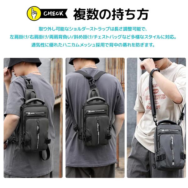 レディース 4WAYボディバッグ ショルダーバッグ リュックサック USB ポート付 斜め掛け ワンショルダー撥水 防水 多機能 軽量 iPad対応 多機能メンズ ブラック