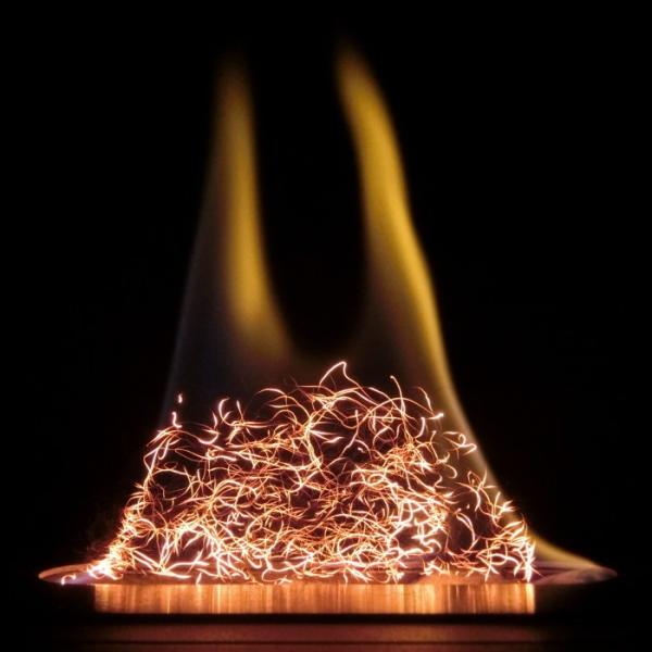 グローメタルファイバーは、バイオエタノール暖炉の魅力を更に引き出すアクセサリーです。炎に熱せられたファイバーは黄金色に光り、炎の揺らめきとともに波打つ幻想的な光の線が鑑賞できます。以前の製品から太さや金属素材を改良し耐久性と使いやすさを向上、日本製として生まれ変わりました。炎の形状に合わせて自由にアレンジできます。また、耐熱性・耐酸化性が高く高温加熱後脆化しにくい特性をもっています。全てのバイオエタノール暖炉に使用でき、繰り返し使うことができます。(原料:国内大手鉄鋼メーカー)