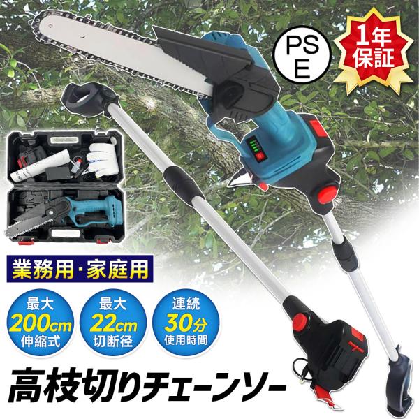 【正規品】高枝切り バサミ 電動 チェーンソー 軽量 伸縮 充電式 剪定ばさみ 柿 剪定鋏 枝きりばさみ 枝切り 切断直径50mm 200cm延長ポール 庭木 園芸用 家庭用