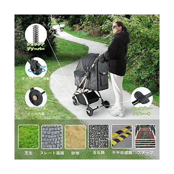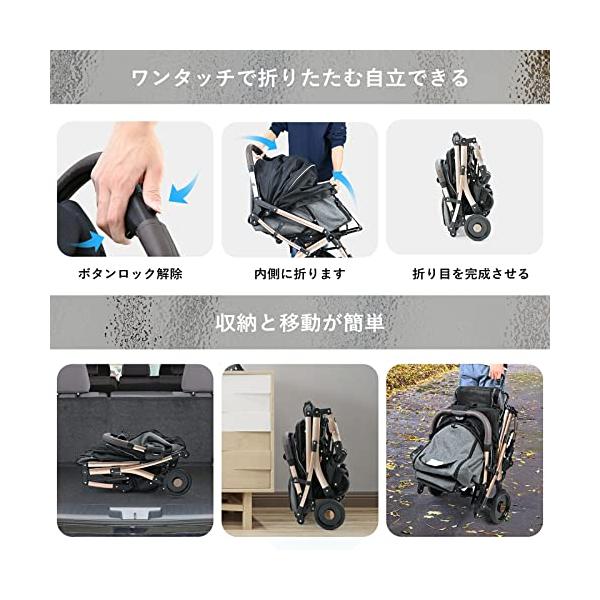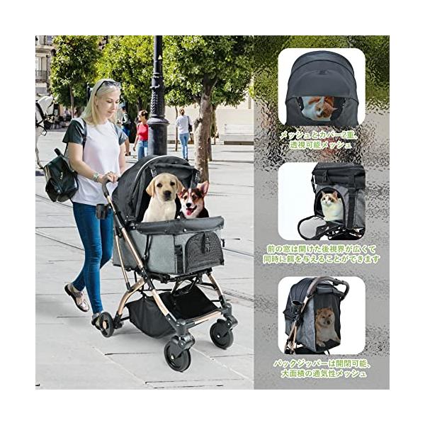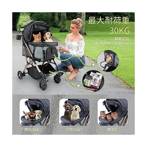 【2023年春の新作】ペットカートはベビーカー用全アルミフレームを使用し、強度と軽さを同?に実現!多頭飼い&小~中型犬向けの耐荷重―30kg、犬バギー重量7kgと軽く女性も取回しが非常にスム ーズ。屋根最大135度開閉可能で、オープンエアルーフ好きな数角度で調整できる、飼い主さんが大切な愛犬の世話/乗せ降ろをしやすいようにします。散歩しながら、視界が広くて景色がもっと楽しめます!ペットにふさわしいハイビューのコクピットです。