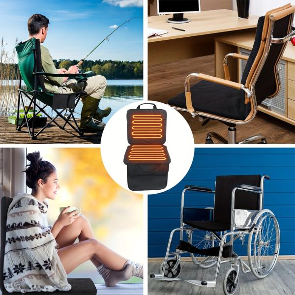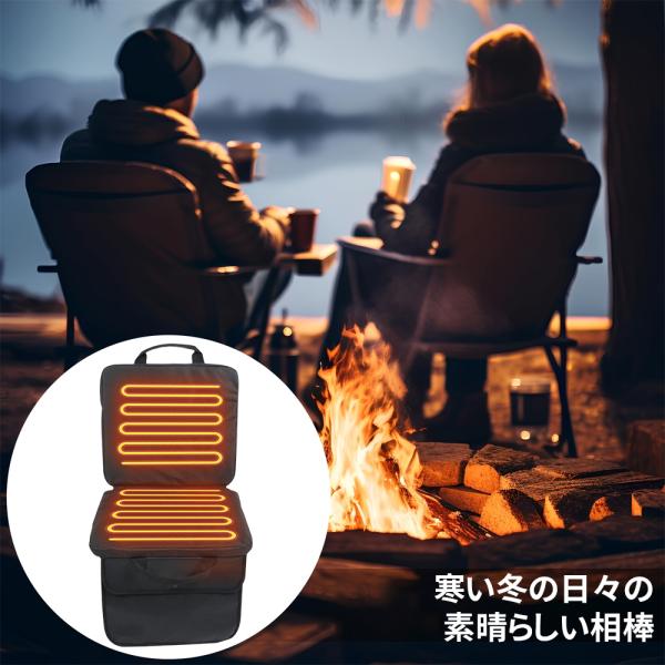 速熱 USB充電式 ヒータークッション 5段階温度調整 5段階タイマー 防寒 アウトドアシート オフィス 椅子 カーペット 収納ポケット付き 暖か ホットクッション