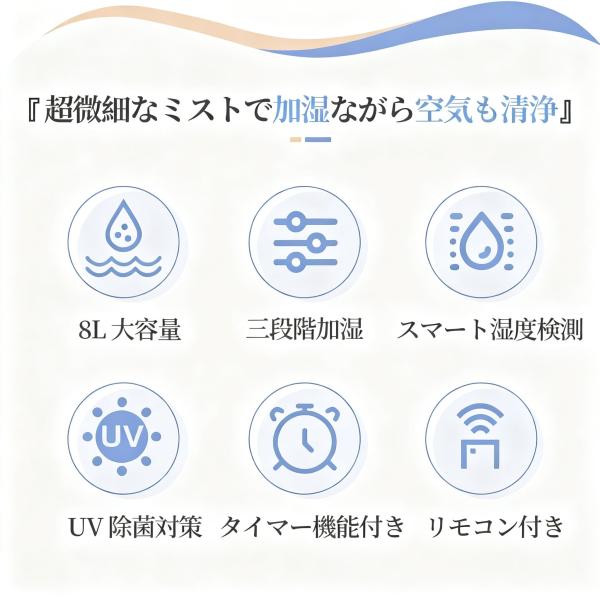2026新型!! 加湿器 8L uv除菌 加湿機 40畳 タワー型 超音波式 上から給水 大容量 3段階モード 静音 リモコン付 アロマ 連続加湿 乾燥対策 湿度設定 時間設定