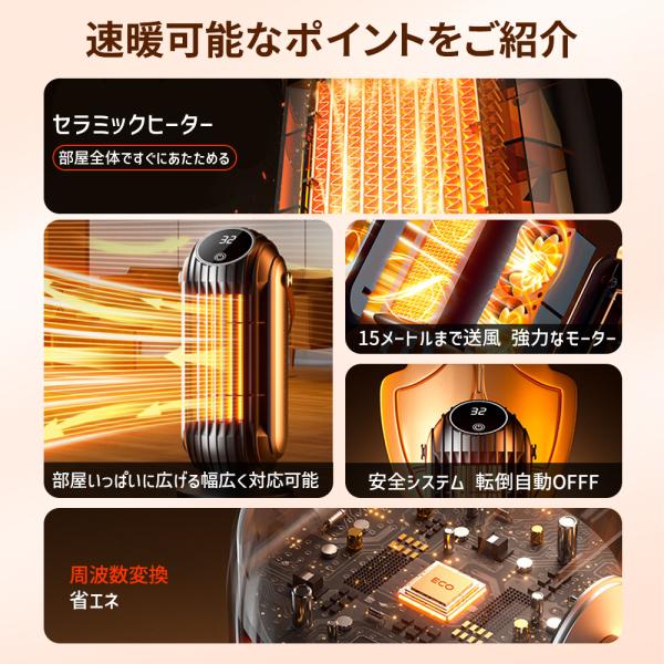 セラミックファンヒーター 暖房 足元ヒーター 4段階切替 3秒速暖 広角送風 静音 防水 リモコン付 オフィス 寝室 脱衣所 風呂場 コンパクト 省エネ 1500W 安全