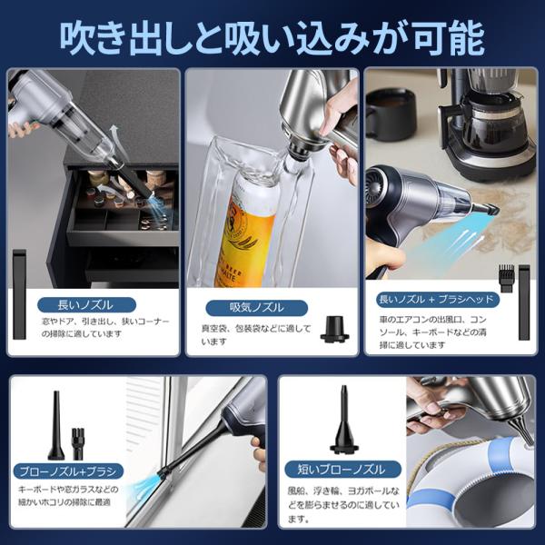 2025!ハンディクリーナー 46800pa コードレス掃除機 3段階調整 空気入れ DCスモーター充電式 静音 強力吸引 小型 家庭用 耐用 車載掃除機 充電式 多機能