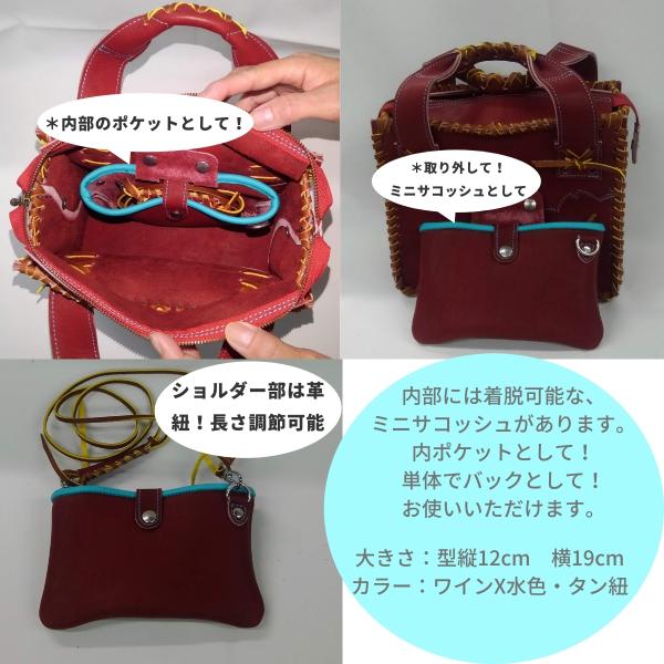 グローブの革製 手作りのミニトートバック ワイン