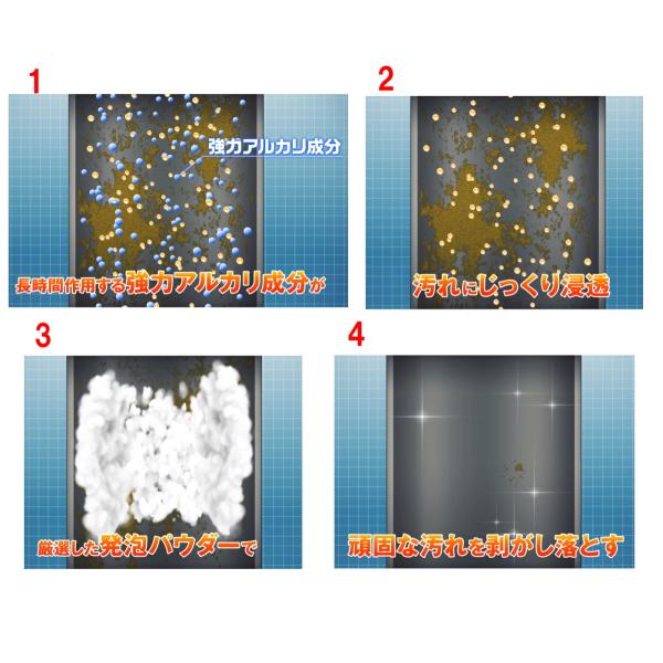■成分 アルカリ剤(ケイ酸ナトリウム)、発泡剤(過炭酸ナトリウム)、水酸化ナトリウム(4%)、界面活性剤(アルファオレフィンスルホン酸ナトリウム)、工程剤