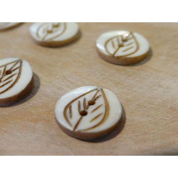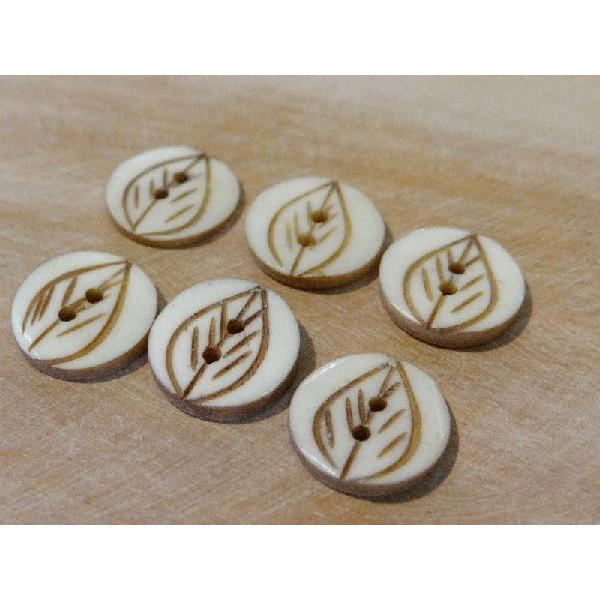 ボタン 6個セット 二つ穴 ゴートホーン 13mm 白 木の葉