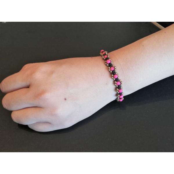 タイのハンドメイドで、天然石の周りにビーズをつなげて花のように形づくられています。