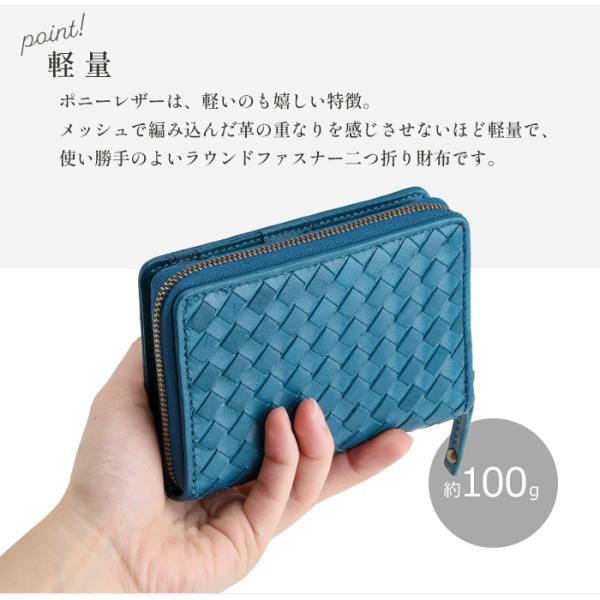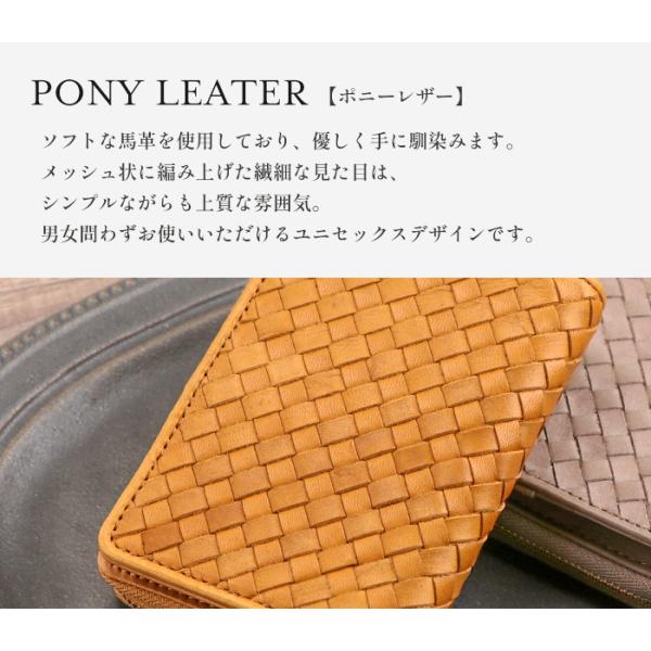 財布 二つ折り メンズ レディース ポニーレザー メッシュ 編み込み 馬革 ラウンドファスナー 30代 40代 人気 春財布