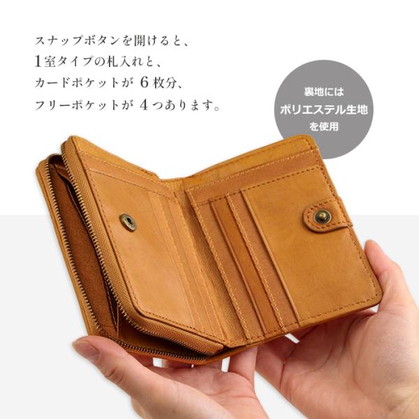 <大人の馬革2つ折り財布 ラウンドファスナー小銭入れ付き>