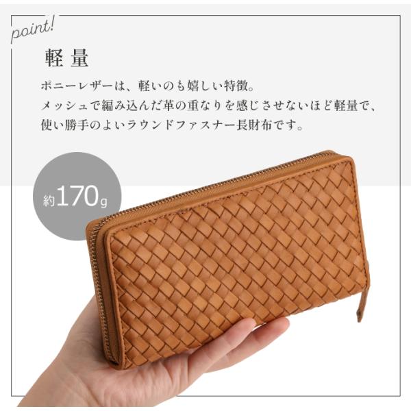 財布 長財布 メンズ レディース ポニーレザー 本革 メッシュ 編み込み 馬革 ラウンドファスナー 30代 40代 人気 春財布