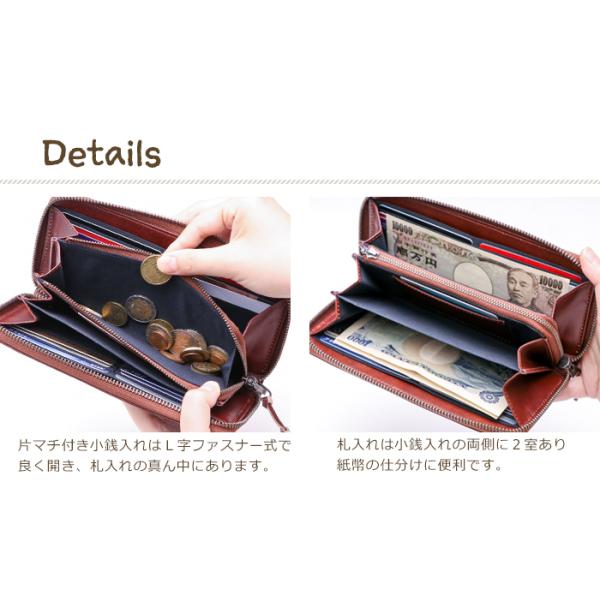 小銭入れをはさんだ両側に、マチ付き札入れが2室あり