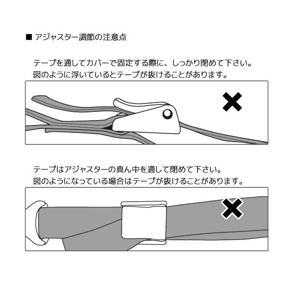 着脱もアジャスターのカバーを上げてテープを抜くだけでお手軽です。