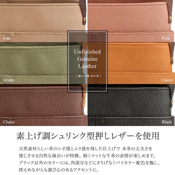 軽さや凹凸に牛革の丈夫さを感じる、マットなシュリンク型押し牛革素材を使用。