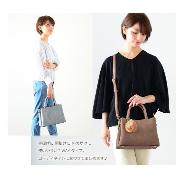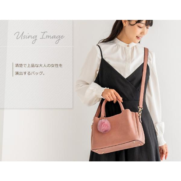 レディース ショルダーバッグ 2WAY 斜めがけ 通勤バッグ ショルダーバック ファーチャーム付 ピーチスキン PRAGMA プラグマ