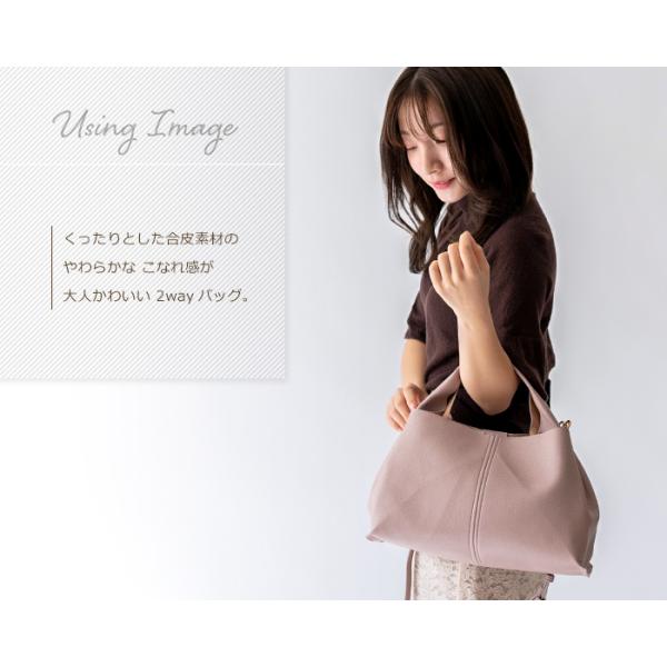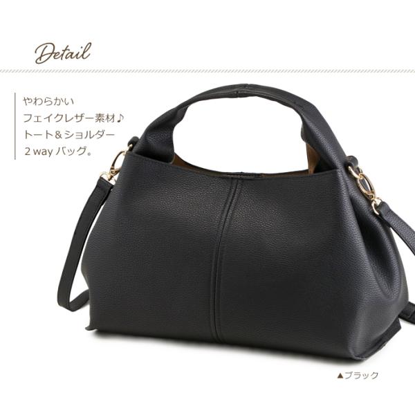 <シンプル ソフト フェイクレザー 2wayトート ショルダー>