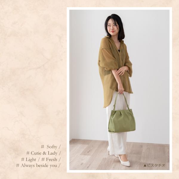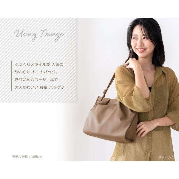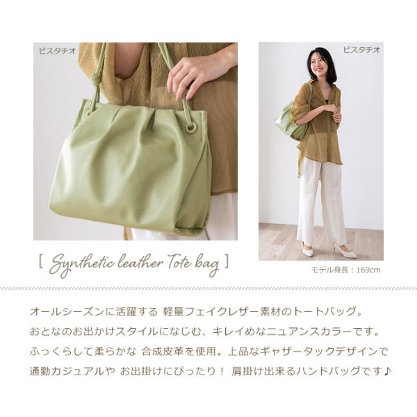 <ギャザータック やわらか 合皮 トートバッグ>
