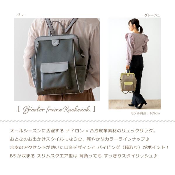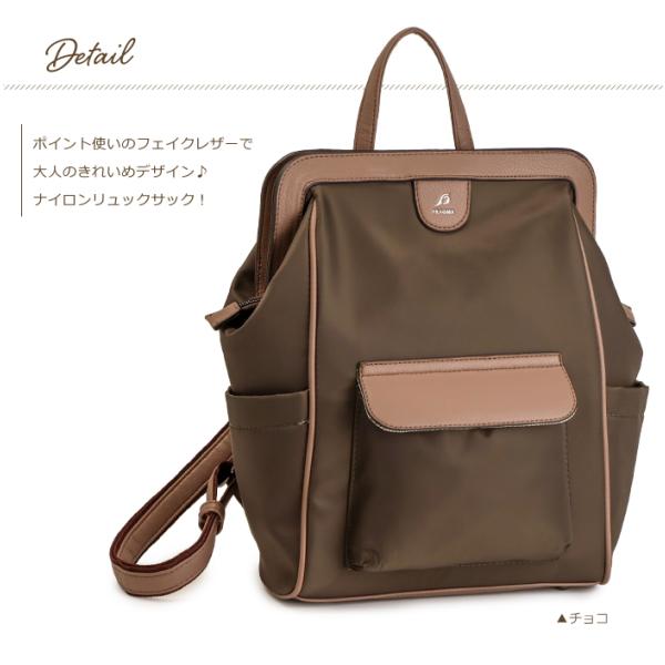 リュック レディース 口金 ナイロン リュックサック 通勤バッグ B5 合皮 縦長 口枠 旅行 女性 30代 40代 50代 PRAGMA プラグマ