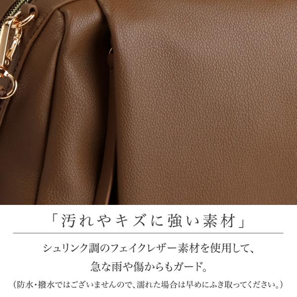 フェイクレザー素材のやわらかなデザインで