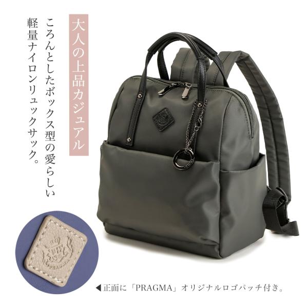 リュック レディース 小さめ 軽量 ナイロン ミニリュック おしゃれ B5 通勤 通学 女子 女性 軽い きれいめ カジュアル 背面 ポケット 合成皮革 上品 旅行 PRAGMA
