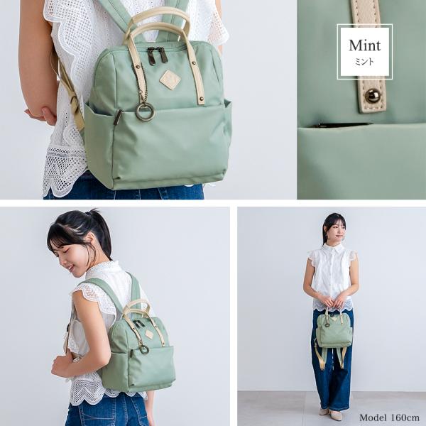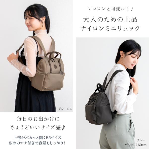 内外合わせて豊富なポケットを備えた、大人のための愛らしいミニリュックです。