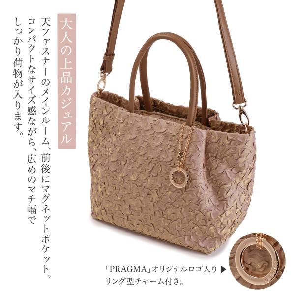 ショルダーバッグ レディース 2way トートバッグ 斜めがけ 軽量 軽い 小さめ 舟形 B5 通勤 ワッシャー シワ加工 きれいめ エレガント 上品 おしゃれ PRAGMA