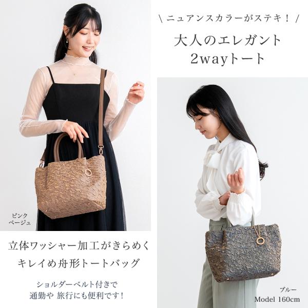 【きらめく立体ワッシャー加工。大人のエレガント2WAYトート】