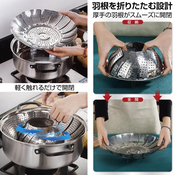 いろいろなサイズの鍋に対応 3点セット ステンレス蒸し器