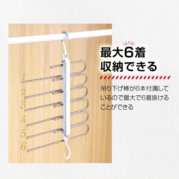最大6本収納でき 取り出しやすいズボンハンガー
