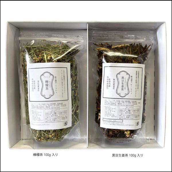 黒豆生姜茶と檸檬茶(レモングラスブレンド)。