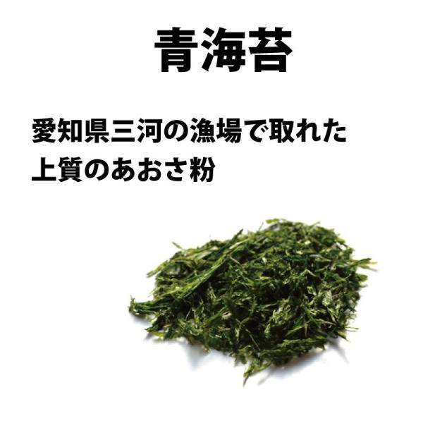 原材料:唐辛子(島根産)、陳皮(九州+愛媛産)、白胡麻、黒胡麻(香川産)山椒(和歌山産)、あおさ(愛知産)、生姜(国産各所)