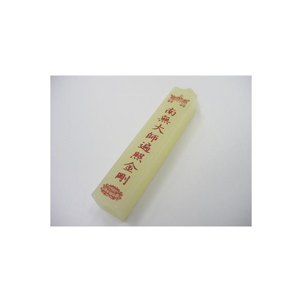 外箱サイズ 横約10cm 縦約14cm厚さ約2.1cm。蝋燭長さ 約6.2cm 太さ約1cm角。4面ある側面のうちの1面に【南無大師遍照金剛】の文字が入っています。燃焼時間は約40分となっております。(ご注意:この価格は経費の安いヤフーショッピング店専用の割引き価格です。)
