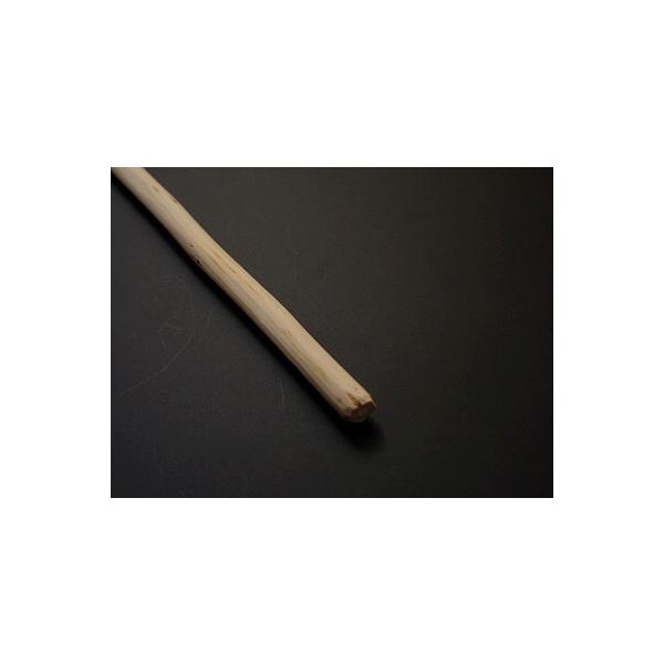 梅製散杖です。ご覧の通り、若干先細りの枝そのまんまですね。自然の木の枝でつかえそうなものを取るだけですので、多少湾曲しています。長さ約54.5cmです。太さは切り口が真円でないので、だいたいですが、11〜12mmぐらいです。ご注意:天然の梅の枝ですので多少湾曲があります。