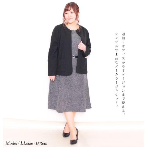 大きいサイズ レディース ジャケット ノーカラー ポケット 通勤