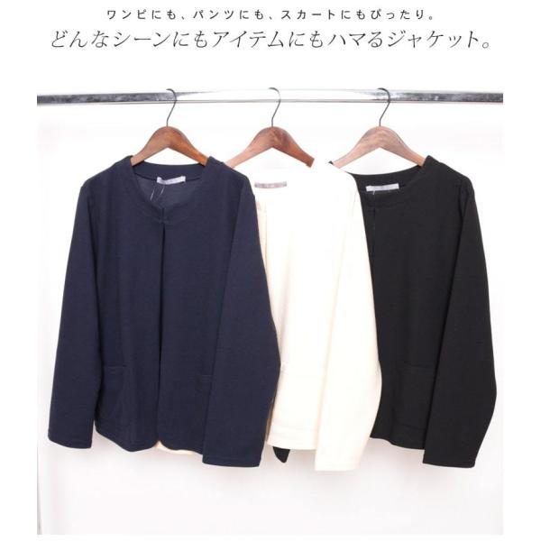 大きいサイズ レディース ジャケット アウター ノーカラージャケット ノーカラー JK コート 羽織り 長袖 無地 フォック ポケット クルーネック 卒園 卒業式 入園 入学式 参観日 通勤 春新作 春服 秋服 LL 2L 3L 4L 5L ブラック 黒 アイボリー ネイビー ゴールドジャパン オケージョン セレモニー フォーマル 冠婚葬祭 卒業式 卒園式 入園式 入学式