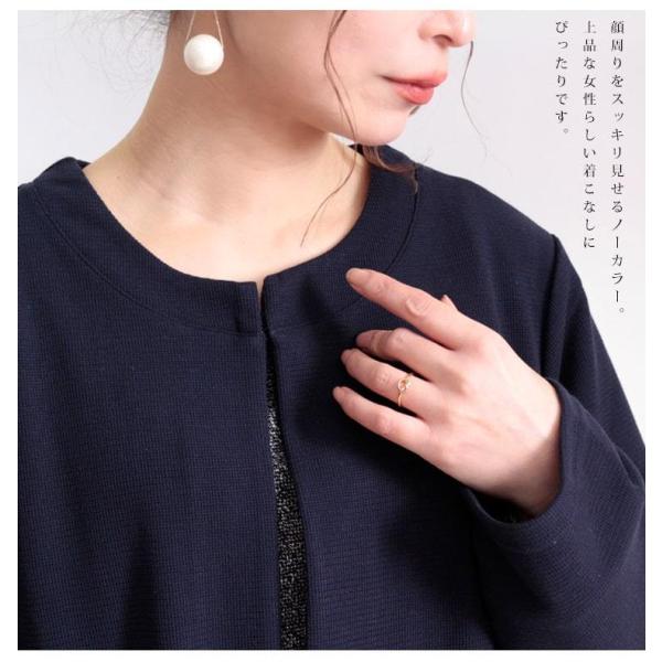 大きいサイズ レディース ジャケット アウター ノーカラージャケット ノーカラー フォーマル 春新作 LL 2L 3L 4L 5L ブラック ネイビー ゴールドジャパン
