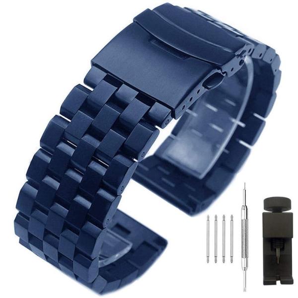 Kai Tian 腕時計 バンド 20mm 青 ステンレス 時計バンド Dバックル尾錠 替えバンド 腕時計 ストラップ 装着簡単