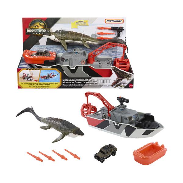 [フィギュアなど][新品]Mattel - Matchbox Jurassic World: Rebirth Mosasaurus Rescue Action Boat Playset