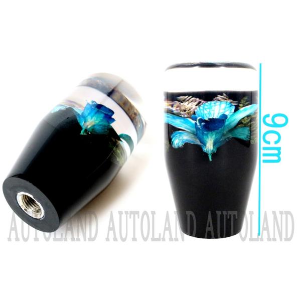 水中花シフトノブ 本物蘭 生花作品 90mm 9cm 青色