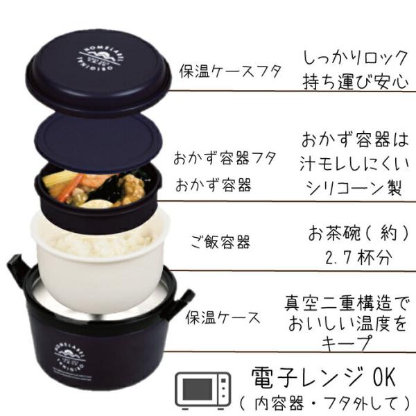 ホームレーベル どんぶりランチジャー 1060 バッグ付き ご飯目安 約2.7杯 ステンレス 真空二重構造 ほかどん HB-5450