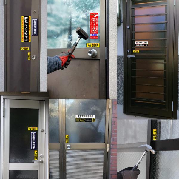 防犯ステッカーの設置は、犯罪者に防犯効果の高い家という印象を与えて大きな脅威となります。